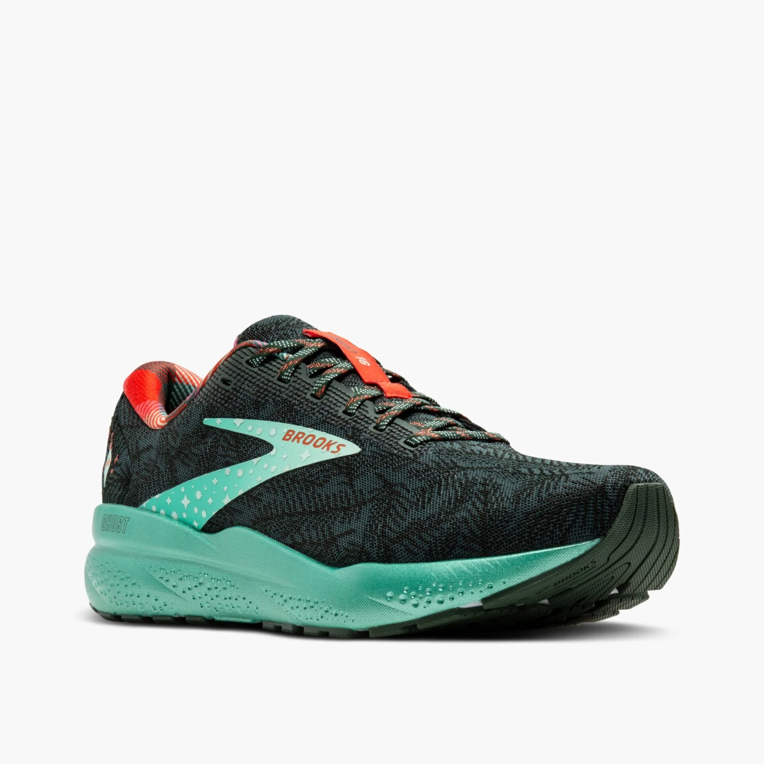 Go dashing all the way back in time with the vintage Run Merry Collection Brooks Men’s Ghost 16. Inspired by mod style with pops of plaid, metallics, and ornaments, this shoe fits holiday traditions new and old.