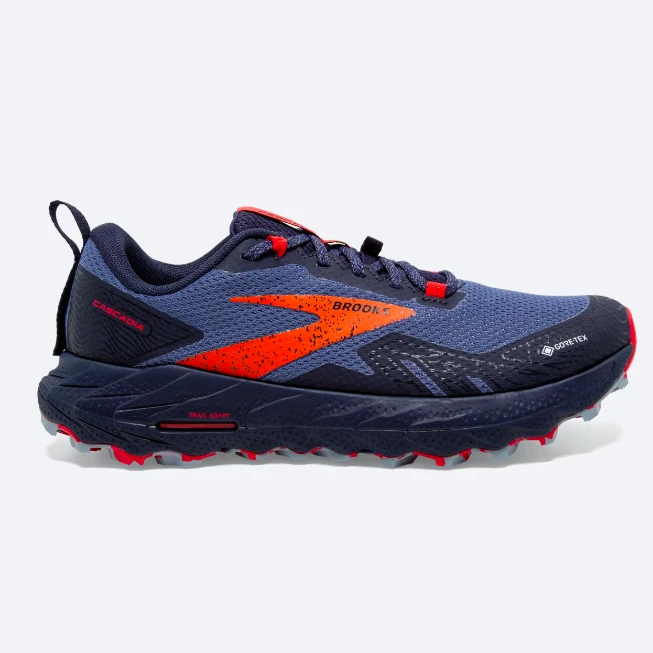 Embrace mountain adventures in the Brooks Women’s Cascadia 17 GTX trail-running shoe. Waterproof materials provide extra protection in wet conditions, while soft cushioning and enhanced stability deliver comfort for long days over varied terrain.