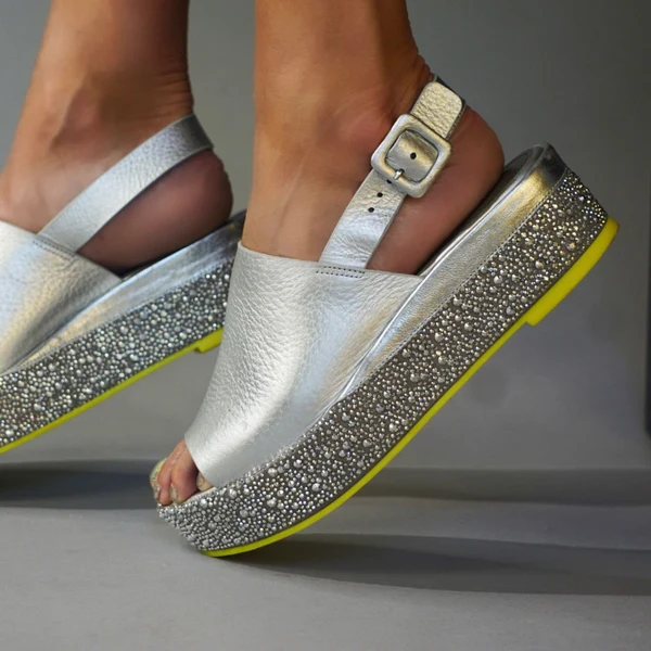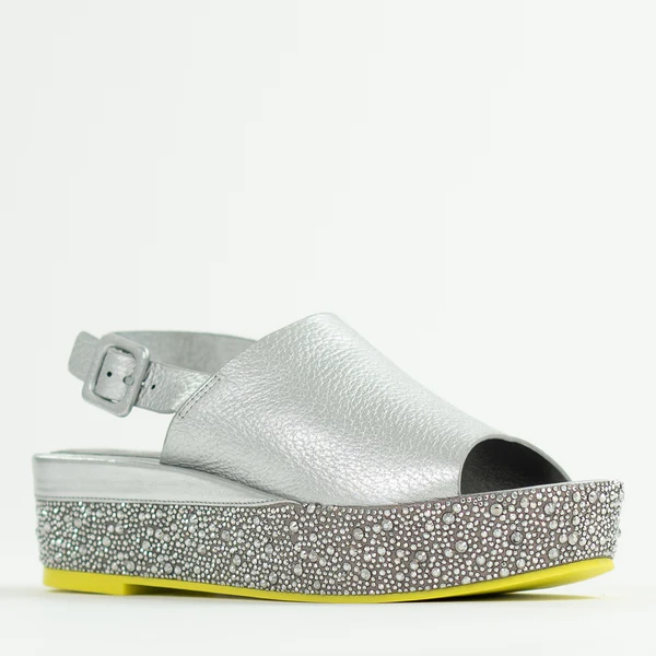 Say hello to summer in the Chunky Slide, Cynthia Richard Women’s Lucille Sandal. Turn heads during your everyday errands and for an evening out on the town. Offered in Prata (silver) soft grain metallic leather. The Lucille will take every aspect of your wardrobe to glam.