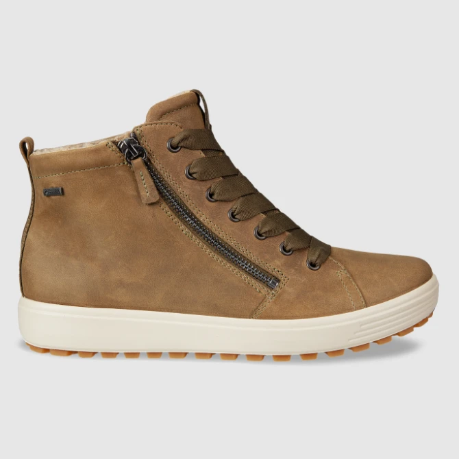 The ECCO Women’s Soft 7 Tred GTX Boot is a feminine, sporty lace-up boot with a side zip, warm lining and material combination for a casual winter look