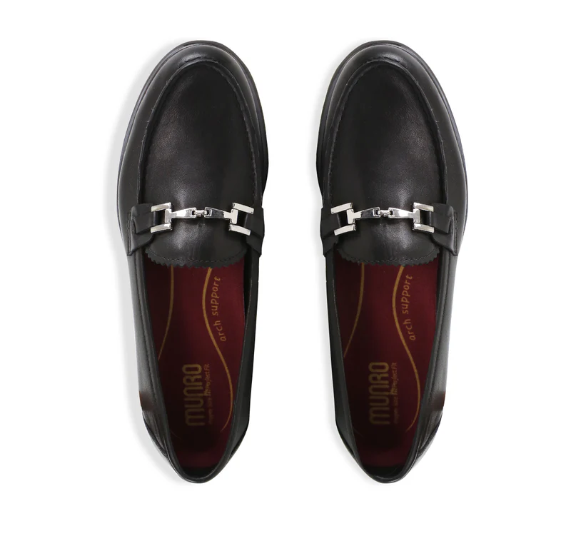 The Munro Women’s Colleen Loafer is a versatile shoe ideal for any occasion, from busy days to nights out. It’s slip-on design and moc toe construction, accented by ornamental details and stylized welting, provide both convenience and visual appeal. Crafted on a lightweight, contoured platform with a removable footbed, this comfortable shoe offers stability and a customized fit to keep you going all day.