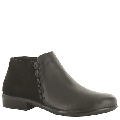 The Naot Women’s Helm is the perfect bootie with double zippers for accessibility.  The Helm has a padded heel cup & instep for ultimate comfort.  This boot has padded technical lining for comfort, warmth & moisture absorption.  Naot’s removable, anatomic cork & latex footbed is wrapped in microfiber & leather and molds to the shape of the foot with wear.  The Aura Collection features a 1.5″ polyurethane sole with a metal shank which is extremely lightweight, durable & abrasive to prevent slipping. This collection uses a hand-sewn stroble construction making it strong and extremely flexible.