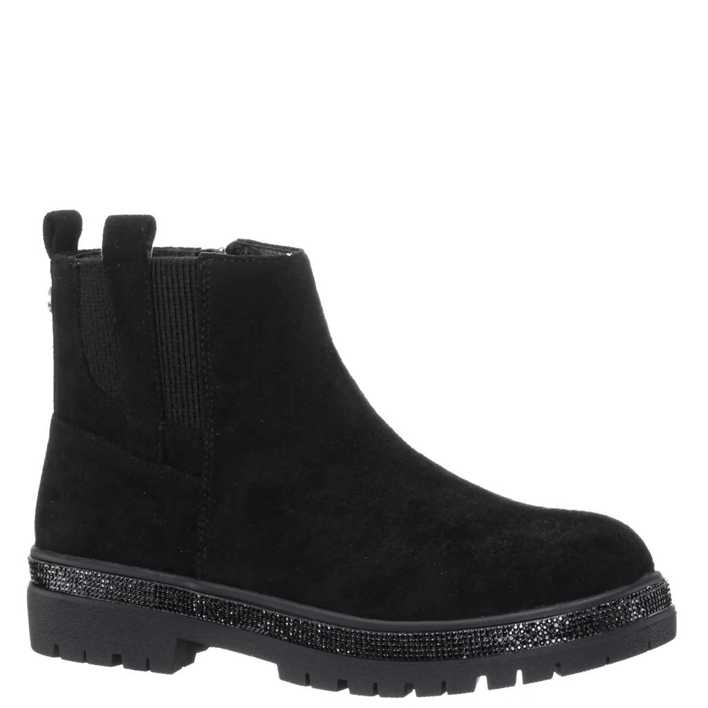 The Nina Kid’s Evan feature a glitter welt and elastic gore for added flair and flexibility. These booties are a charming addition to any outfit. With the convenience of an inside zipper, they’re as easy to wear as they are stylish. Let her step out in shimmering confidence with these adorable booties, perfect for adding a touch of magic to any outfit.